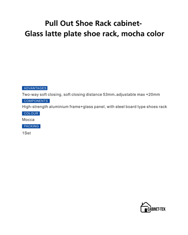 Pull Out Shoe Rack Two Way Soft Closing Draw Cabinet- Glass Latte Plate Shoe Rack, Mocha Colour. Create Your Own Wardrobe Space.