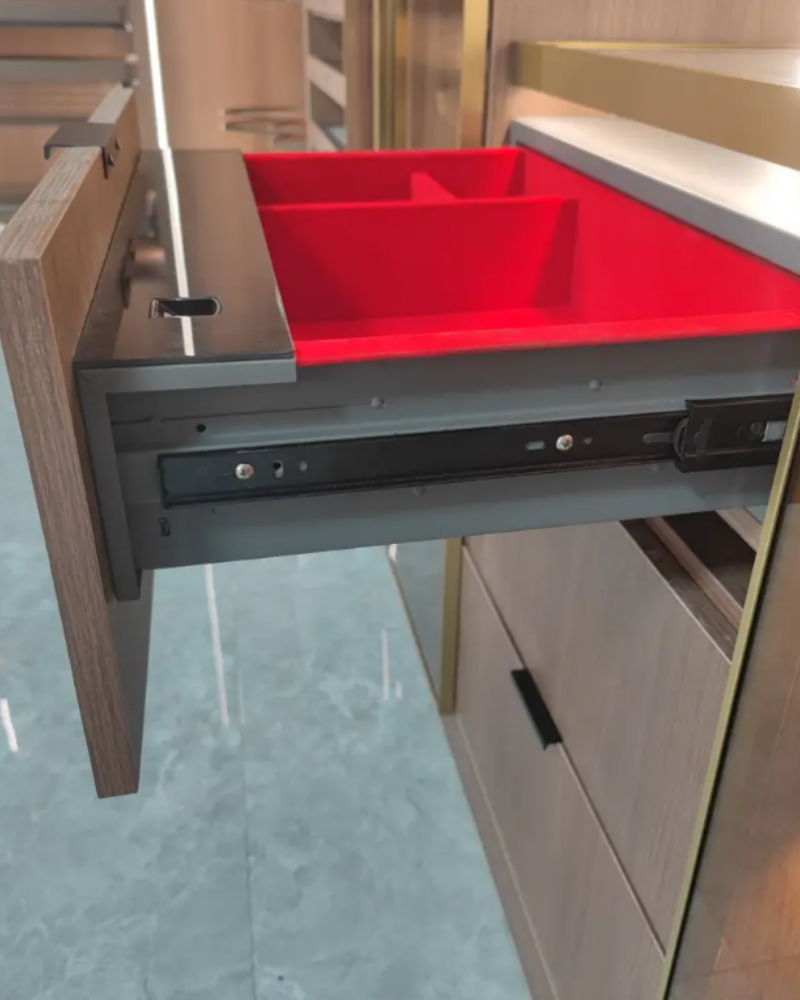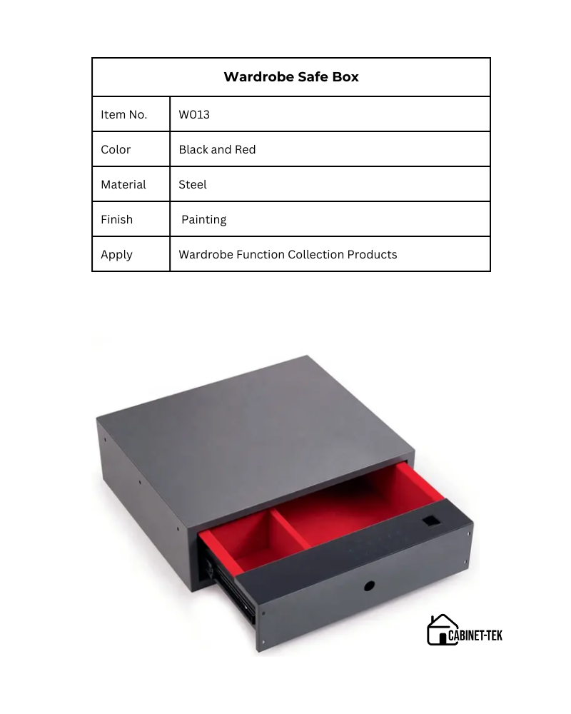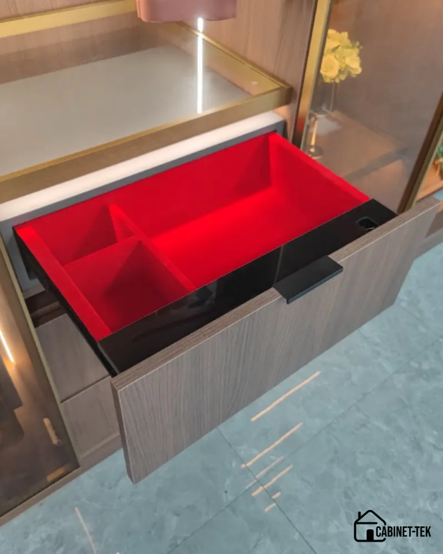 Slide Drawer Hidden Digital Lock Box. Password or Fingerprint Protection. Made From Steel – Concealed In Your Drawer – Soft Material Interior Design – Black & Red.